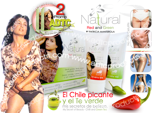 "Los años no pasan solos y generalmente en el caso de nosotras la mujeres vienen acompañados de celulitis y flacidez, pero afortunadamente hace mucho conocí un componente que ha hecho posible que nada de eso me pase, un componente tan Mexicano como yo “El Chile” y el “Té Verde”" por Patricia Manteola., consumidos en Asia y a el se atribuye la delgadez y salud de los orientales. El té verde es el componente usado en pastillas adelgazantes del mundo.